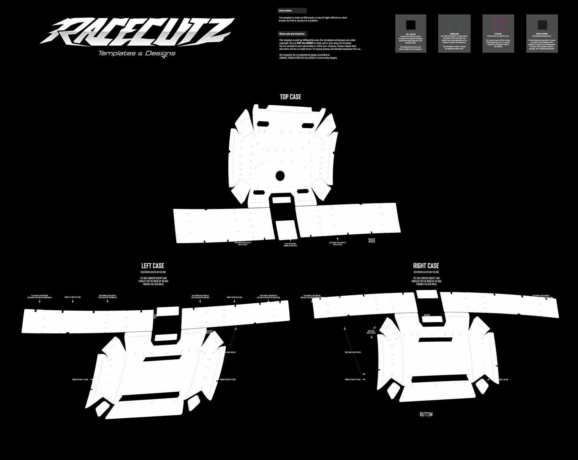 Specific about this template for the: (Side Carriers, Valises, Panniers, Case set, Luggage, Tool boxes)