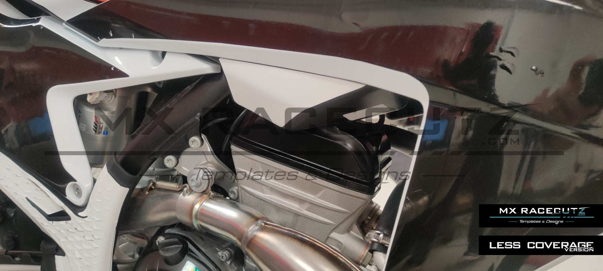 Besides the usual, following parts is included in the template: Ventet air filter cover, frame guards, lower and upper gas tank and radiator guards.